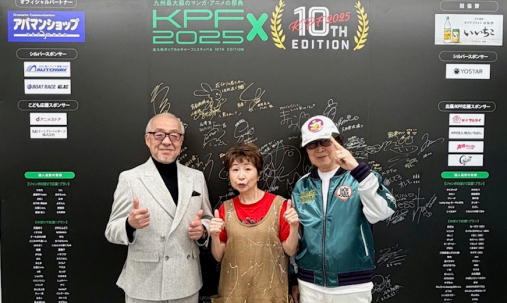 九州最大級のマンガ・アニメの祭典。凄い熱気でした! 古川登志夫は、2025年の大会で⑤回参加したことになります。 画像左から:中尾隆聖、田中真弓、古川登志夫 |