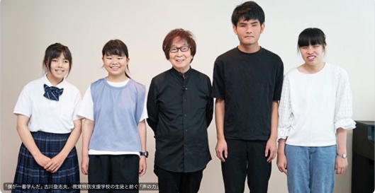 2019.9.20 ■「声の力」プロジェクト古川登志夫×筑波大学附属視覚特別支援学校 文化庁「令和4年度障害者等による文化芸術活動推進事業」として、視覚障害児が声による伝え方の多様性を学ぶことで、自分の可能性を再発見することを目指す。文化庁と朝日新聞社が主体とな青二プロ/青二塾と主婦の友インフォス(「声優グランプリ」編集部)の協力を得て進めている。 先ずは自己紹介、発声発音、演技プランの立て方 |