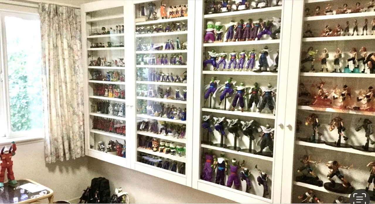 左壁面のDIYのフィギュア棚。ピッコロとエースが 多い。小さき者が小さきモノに惹かれる、といった ところ(^^;) |