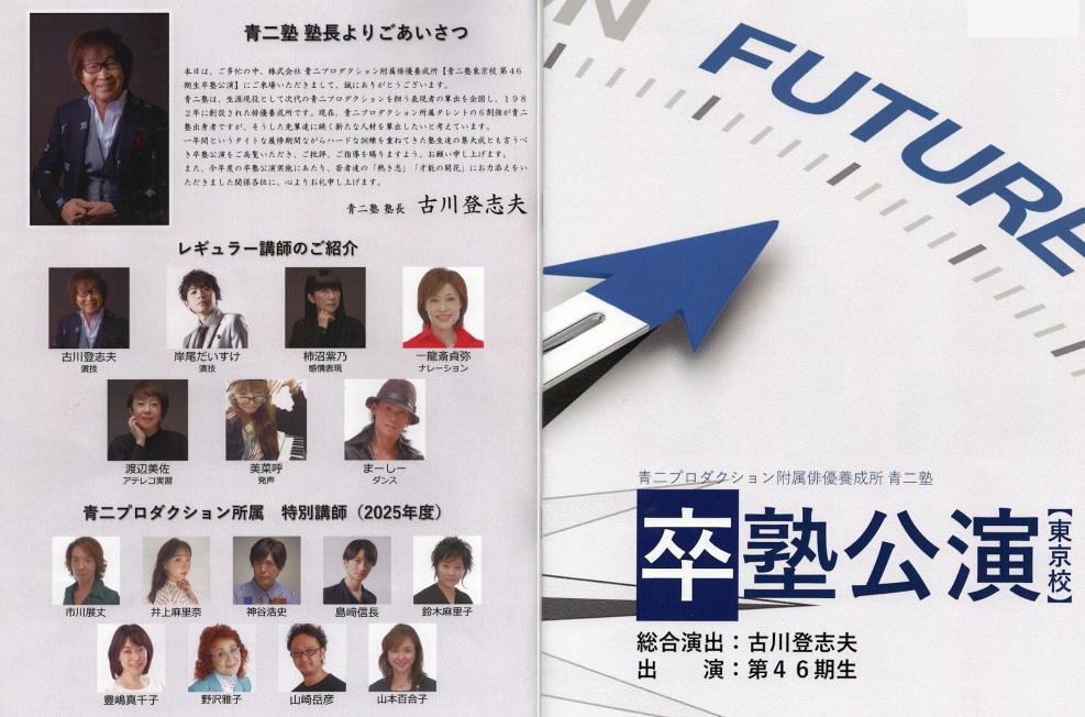 | ●後進の育成… | (株)青二プロ附属俳優養成所【青二塾 東京校&大阪校】の塾長として後進の育成。 | ||