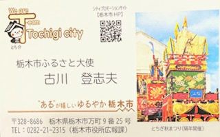 | 【栃木市ふるさと大使】を拝命 【栃木市観光協会】 | |