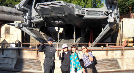 | 左から:スターウォーズパフォーマーの方、古川登志夫、柿沼紫乃、そしてワシントンのOTAKON2022でお世話になった華(はな)さん。実は華さんはここで働いておられ、あちこち顔パスでした。感謝! |